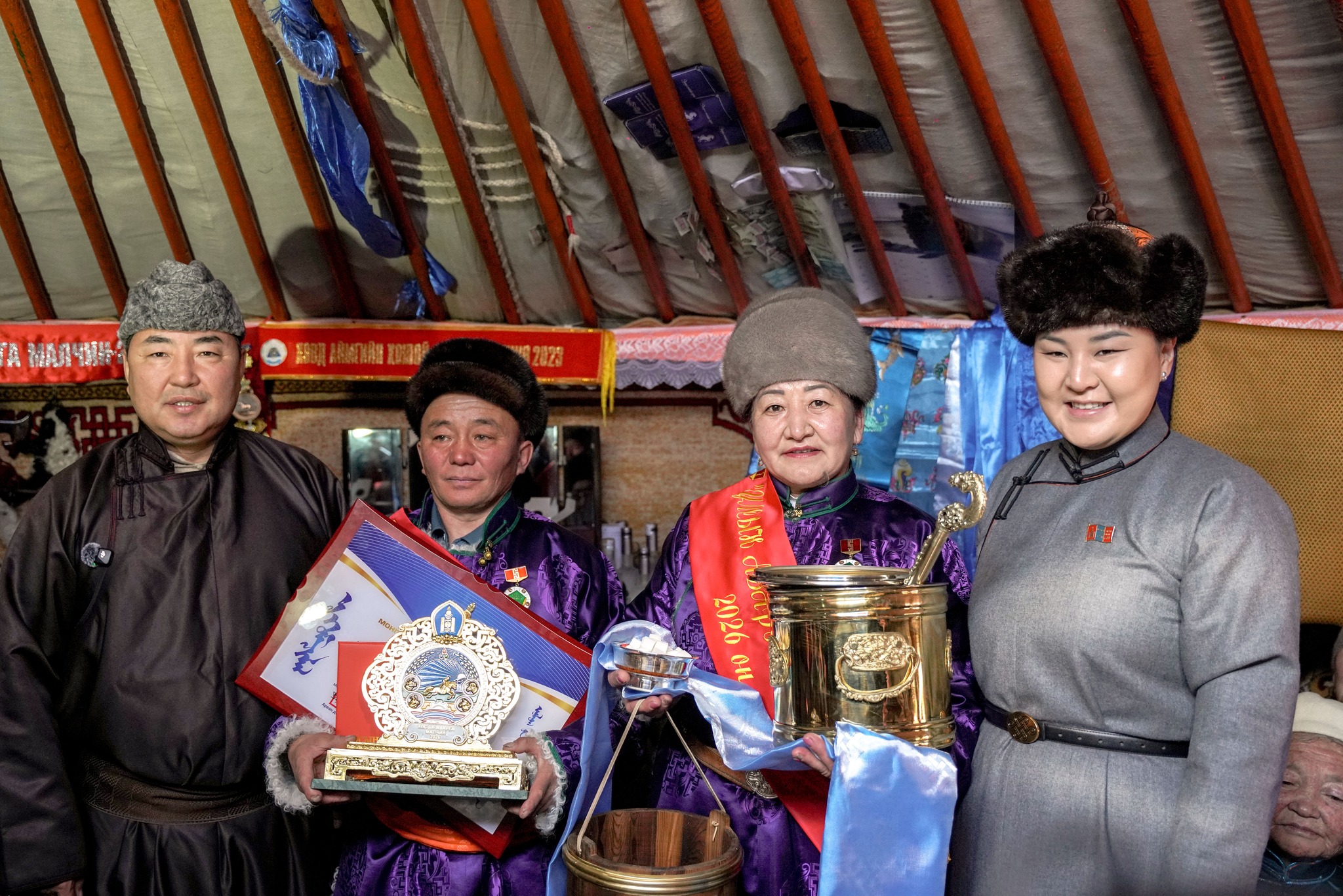 VII жарны “Сүрээр дарагч” хэмээх Гал морин жилийн сар шинийн босгон дээр Ховд аймгийн Улсын Тэргүүний Зэрэг сумын Бургасан багийн малчин Дүгэржавын Амарзаяа, гэргий Долгорын Тунгалагцэцэг нар “Монгол Улсын аварга малчин” цол хүртэж, шагналаа гардан авлаа. Улсын аварга малчны шагналыг УИХ-ын дэд дарга Б.Пүрэвдорж, УИХ-ын гишүүн Э.Болормаа нар гардууллаа. Мөн аймгийн Нийгмийн бодлогын асуудал хариуцсан орлогч М.Баярт, сумын удирдлагуудын хамтаар хүндэтгэл үзүүлж баяр хүргэлээ. Эрдэнэт мал сүргээ таван төрлөөр нь өсгөн үржүүлж, үүлдэр угсаа, ашиг шимийг нь сайжруулан малч ухаан, туршлагаараа манлайлан ажиллаж, Монголын уламжлалт мал аж ахуй нүүдэлчин соёлоо өвлөн тээж яваа эрхэм аваргын гэр бүлд сайн сайхан бүхний дээдийг хүсэн ерөөе.