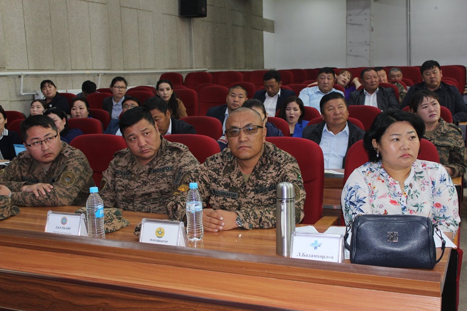 Өнөөдөр тус ажлын хэсгийнхэн аймаг, сумын ЗДТГ-ын дарга нар, Цэргийн штабын бүрэлдэхүүн, БОЭТ-ийн нарийн мэргэжлийн эмч нар, сумын болон өрхийн ЭМТ-ийн эмч нарт “Цэргийн насны залуусын эрүүл мэндийн тулгамдсан асуудал, түүнийг шийдвэрлэх арга зам, цэрэг татлагын эрүүл мэндийн үзлэгийг зохион байгуулах” талаар сургалт, хэлэлцүүлэг зохион байгууллаа.