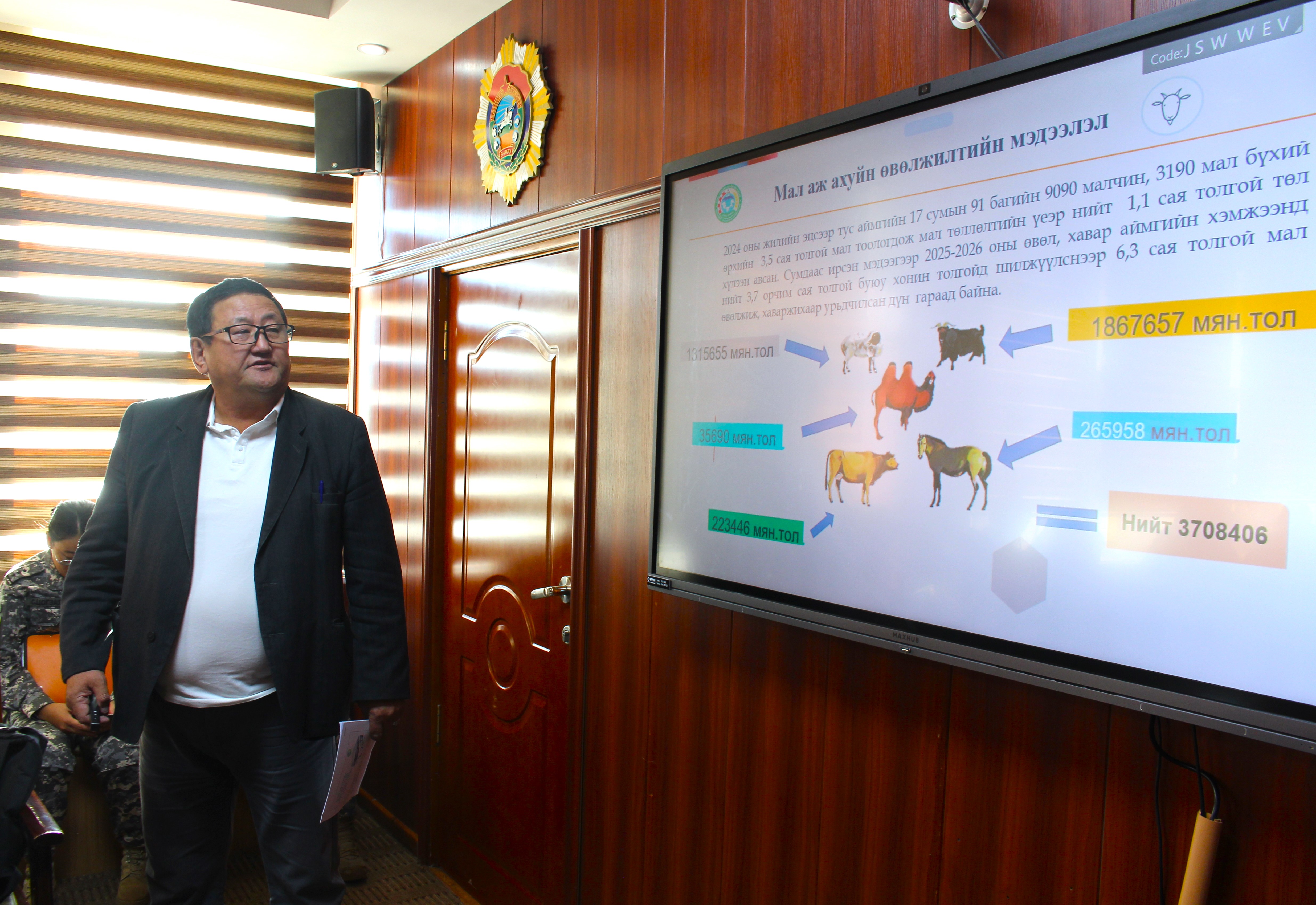 Хурлаар аймгийн Хөдөө аж ахуйн болон төв суурин газрын өвөлжилтийн бэлтгэл ажлын явц, хийсэн ажлын гүйцэтгэл, болон цаашид анхаарах асуудлыг хэлэлцэв. Хэлэлцэж буй асуудалтай холбогдуулан ажил хариуцсан албан тушаалтнууд мэдээлэл хийлээ. Сум, аймгийн аюулгүйн нөөцөд бэлтгэсэн өвс тэжээлийн бүрдүүлэлт урьдчилсан байдлаар 30,3 хувьтай байгаа бол малчдын түвшинд бэлтгэсэн өвс 110 хувьтай, тэжээл 42 хувьтай, хужир шүү 64.3 хувьтай байна. Харин төв суурин газрын өвөлжилтийн бэлтгэл урьдчилсан байдлаар 70 хувьтай хангагджээ.