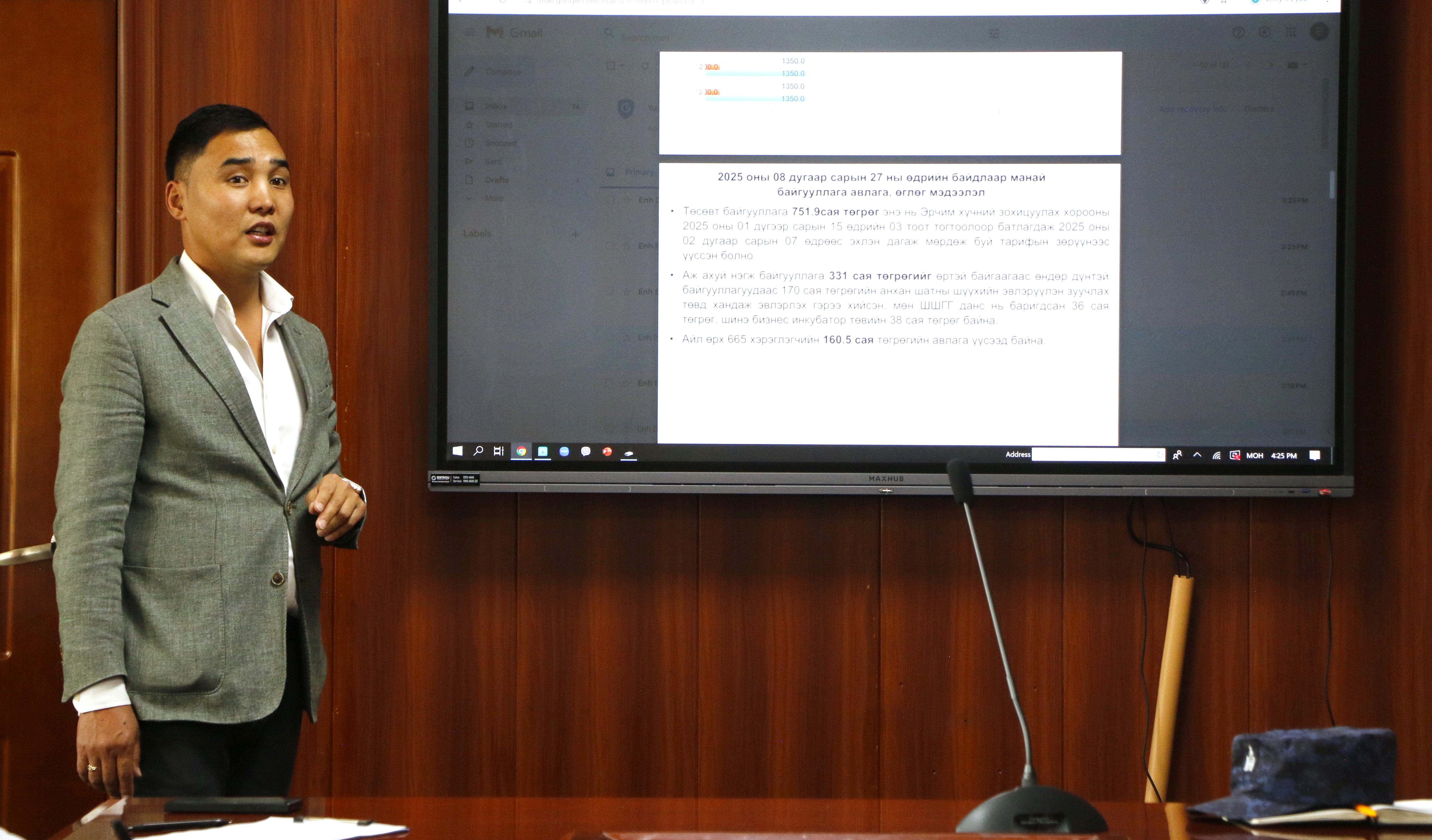 Хэлэлцэж буй асуудалтай холбогдуулан ажил хариуцсан албан тушаалтнууд мэдээлэл хийж, анхаарах асуудлын талаар мэргэжлийн байгууллагуудын дарга нарт чиглэл өглөө.