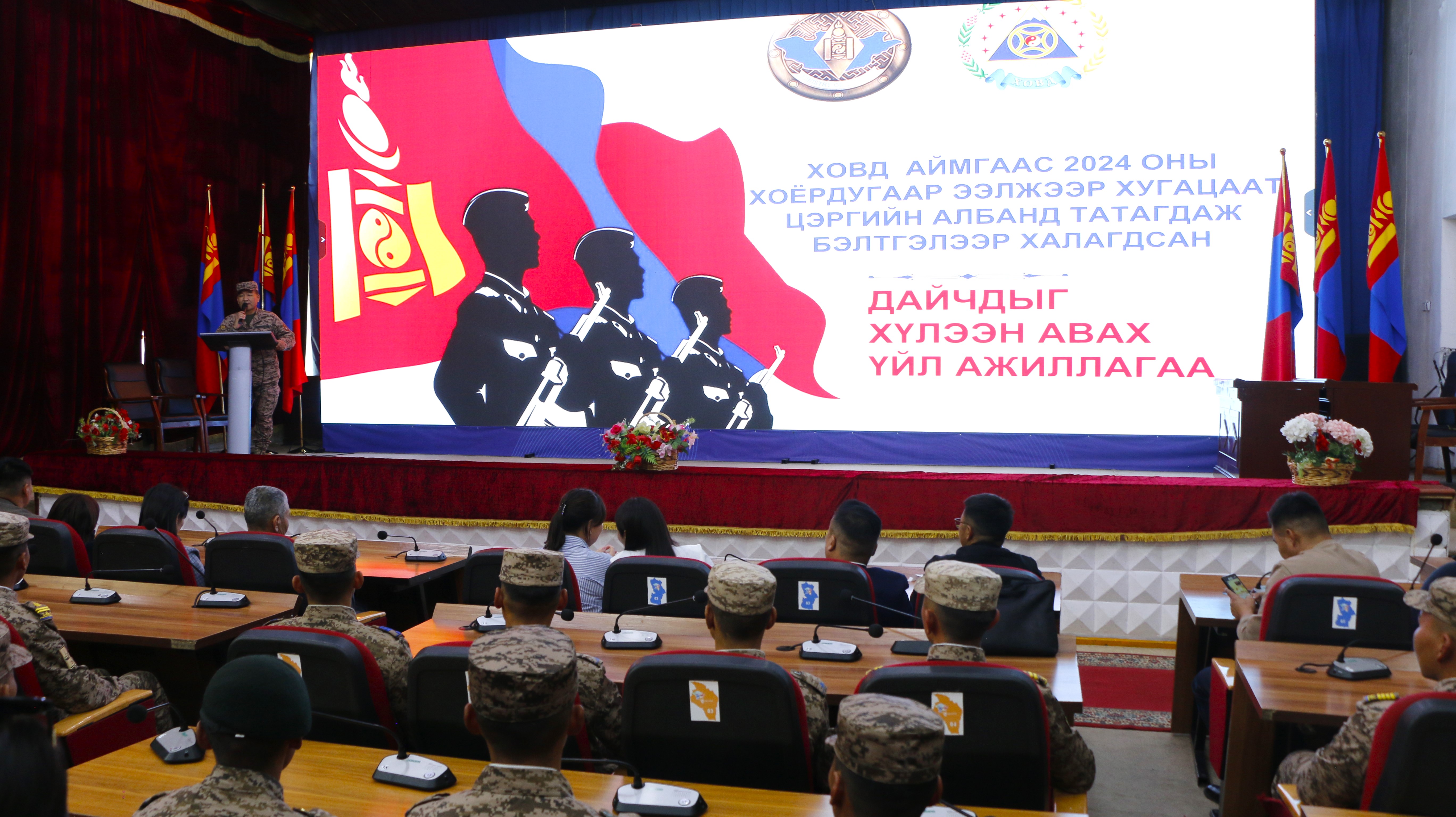 Аймгийн ЗДТГ-ын Цэргийн штабаас бэлтгэлээр халагдсан дайчдыг хүлээн авах үйл ажиллагааг зохион байгууллаа. Монгол улсын Үндсэн хуулиар хүлээсэн иргэний цэргийн үүргээ биелүүлэн, цэргийн албаа нэр төртэй хаасан дайчдад аймгийн ЗДТГ-ын Цэргийн штабын дарга, хурандаа Б.Ганхуяг баяр хүргэн, хүндэтгэл илэрхийлж, амжилт хүслээ.